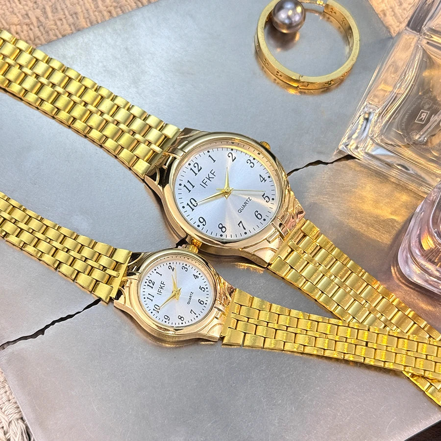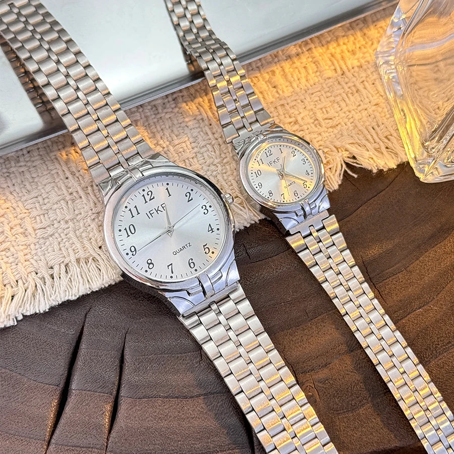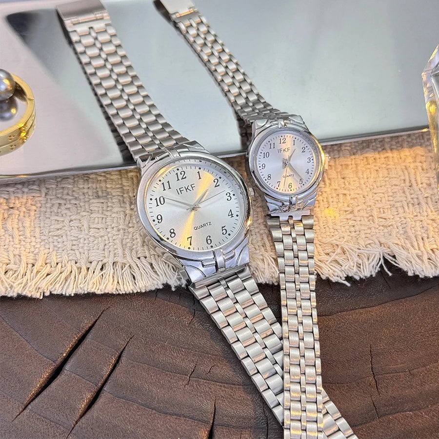 Digital Large Dial Unisex Quartz Watch Fashion Classic Steel Band Couple Gift Combination Men's And Women's Wristwatch